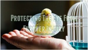 Use an eye shield or cone collar to prevent your bird from scratching or rubbing the injured area. Handle your bird gently during this process, as stressed birds can worsen their injuries.