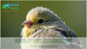 When checking for bird eye pain indicators, watch for squinting, head tilting, or reluctance to open the affected eye.