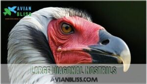 Turkey vulture identification becomes easier when you notice their distinctive large diagonal nostrils positioned prominently on their bright red bill.