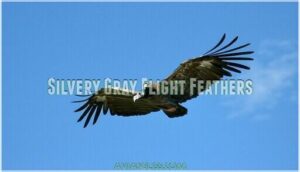 These silvery-gray feathers create stunning contrast against the bird’s dark body plumage.