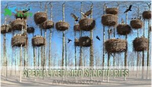 You’ll find that specialized bird sanctuaries serve unique conservation purposes beyond general habitat protection.