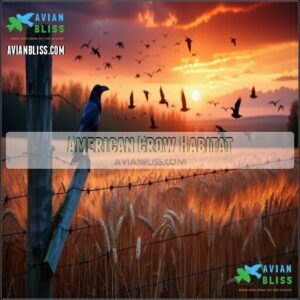 Their Nesting Habits involve building stick platforms in tree forks, while their intelligence rivals that of primates. You’ll spot these adaptable Black Bird Species thriving everywhere from urban parks to rural farmlands, making Bird Identification straightforward once you know what to look for.