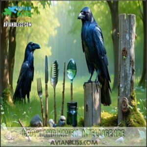 You’ll find American Crows using tools and recognizing faces, while intelligent Ravens solve complex puzzles.