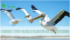 - American White Pelican – Massive wingspan spans nearly eight feet during cooperative feeding displays