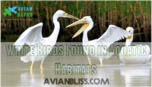 When you’re looking for impressive white birds, you’ll find that large species like the American White Pelican and White Ibis command attention with their size and distinctive features.