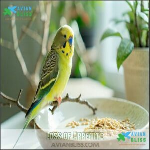 Check for other symptoms like fluffed feathers, decreased activity, or changes in droppings. Weighing your bird regularly with a gram scale can help you catch problems before they become critical—visual checks often miss weight changes until they’re severe.