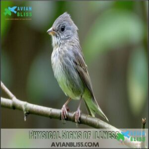 Watch breathing patterns too; open-mouth breathing or heavy chest movements are red flags. Subtle signs like lethargy or weight loss may hint at bird diseases.