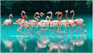 You’d be amazed by birds’ unique abilities—like traversing using Earth’s magnetic field, mimicking sounds (even chainsaws!), hovering mid-air, and echolocation.