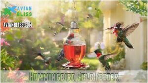 This unique hummingbird feeder transforms ordinary hummingbird nectar into an artistic display, attracting hummingbirds while complementing your outdoor décor perfectly. To further enhance attraction, consider that red color is key for these birds.