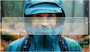 Look for adjustment comfort features like cord locks and reinforced zip closures that maintain weather protection without restricting your head movement during long observation sessions.