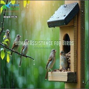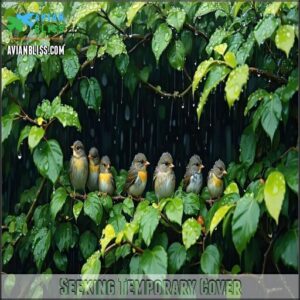 You’ll notice birds don’t just vanish during downpours – they’re actively seeking shelter!