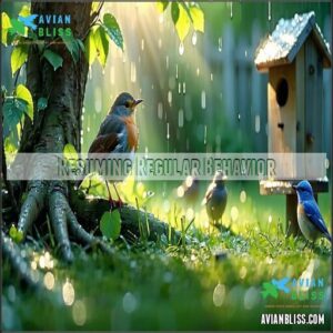 After the downpour ends, you’ll notice birds quickly return to their normal routines.