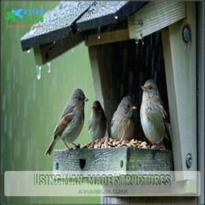 Bird shelters like roosting boxes provide excellent sanctuary when properly placed away from prevailing winds.