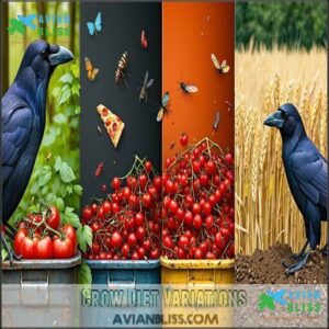 You’ll find crows eating everything from seeds to carrion, thanks to their incredible dietary adaptations.
