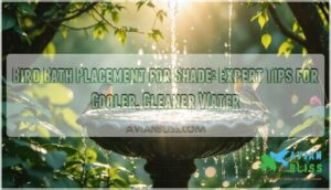 For effective bird feeding tips, keep feeders low-maintenance and natural-looking, blending seamlessly into your garden to create a welcoming environment.