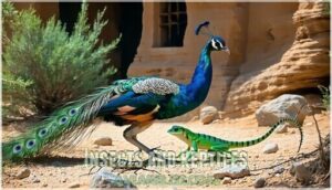 Why not harness your peacocks’ natural hunting instincts for pest control? These impressive birds serve as living pest management systems, tackling various unwanted creatures around your property.