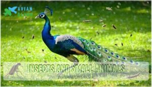 Their peafowl insect diet includes everything from crickets to spiders, providing essential protein for digestion efficiency.