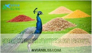 When selecting peafowl food, you’ll find specialized options that match their natural foraging habits.