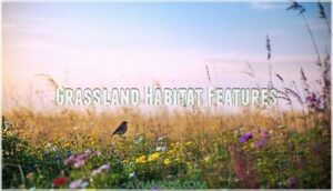 You’ll find meadowlarks and sparrows flourishing in grass-forb mixtures that provide nest concealment while maintaining 50-75% grass coverage.