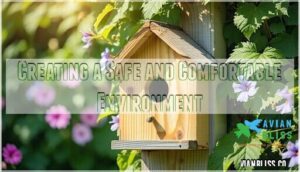 Your birdhouse design success depends heavily on proper airflow and water management. Without adequate birdhouse ventilation and drainage solutions, even perfect birdhouse hole size won’t matter. Poor airflow importance leads to overheating, while inadequate drainage creates dangerous moisture buildup that threatens nestling health and birdhouse longevity through mold prevention failures.