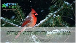 How much sleep do these vibrant red birds actually need? Northern Cardinal sleep patterns differ dramatically from human cycles, creating fascinating Circadian Rhythm adaptations. You’ll discover cardinals don’t follow traditional Sleep Stages like mammals do.