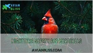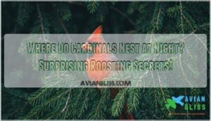 You’ll discover that cardinals don’t actually nest at night, but instead engage in roosting behavior that’s quite different from their daytime nesting activities.