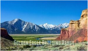 You’ll find golden eagles breeding across vast territories in three North American countries, each offering distinct nesting environments and seasonal patterns.