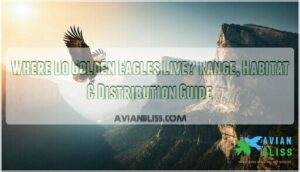 You’ll find golden eagles soaring through the Rockies, Appalachians, Sierra Nevada, Cascade Range, Alps, Pyrenees, Caucasus Mountains, and Russia’s Urals. They’re perfectly adapted to mountainous terrain up to 12,000 feet elevation.