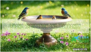 Trusted bird bath brands offer quality and durability, often backed by warranties.