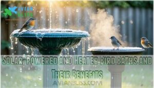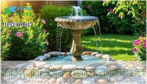 To further improve safety, make certain your birdbath provides secure footing for birds and consider quiet spots for placement, ensuring a natural food source is nearby.