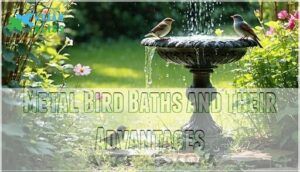 Metal bird baths shine with weather resistance but may rust without proper care.