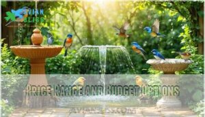 Entry-level baths like simple plastic or DIY birdbaths are budget-friendly, while mid-range options with premium materials like resin or ceramic suit most backyards.
