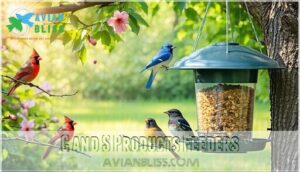 You’ll find options like tube feeders, platform designs, and squirrel-proof models, perfect for attracting feathered friends to your yard.