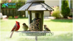 You’ll find trusted names like Perky-Pet, Wild Wings, Pennington, and C&S Products offering feeders designed for specific bird species and weather conditions.
