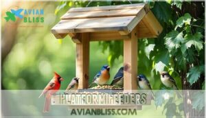 Platform feeders feature an open platform design that’s perfect for attracting large birds like jays and cardinals.