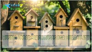 Cedar bird houses stand out for longevity, resisting rot and insects while adding natural charm.