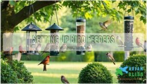 Place feeders near shrubs but away from windows for bird safety. Install squirrel deterrents to protect your investment.