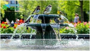 When searching for urban waterfowl, you’ll discover that fountains and ponds create essential migratory stopovers in concrete jungles.