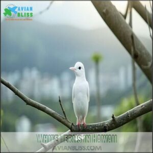 You’ll find several white bird species in Hawaii, including the White Tern (Manu-O-Ku), Cattle Egret, Great White Egret, Red-Tailed Tropicbird, and White-Tailed Tropicbird.