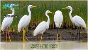 You’ll notice that legs and feet reveal everything about how white water birds master their aquatic world. These specialized appendages serve as both hunting tools and mobility systems perfectly adapted to wetland life.