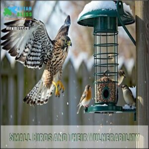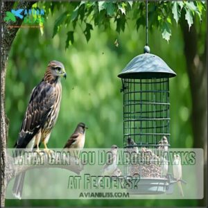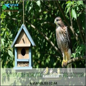 By providing shelter and adjusting feeders, you’ll make it harder for hawks to target them, this can be considered a simple step.