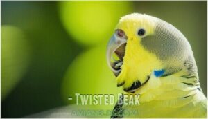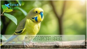 When your parakeet’s beak doesn’t line up properly, you’re looking at a beak alignment issue that can seriously impact their daily life.