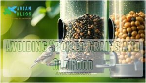 Check your bird seed storage regularly for freshness indicators like musty odors or visible mold. Practice safe storage in dry, sealed containers and maintain regular cleaning schedules for feeders.