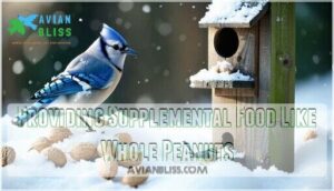 Beyond your regular feeder routine, whole peanuts serve as premium winter bird food supplies that attract jays, woodpeckers, and nuthatches.