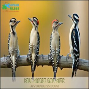 In Texas woodpecker species, bill length varies dramatically – from the Downy’s short, delicate bill to the Pileated’s powerful chisel.