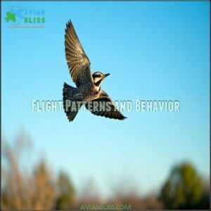 You’ll notice their flight speed varies by species; Pileated woodpeckers maintain strong, direct paths while distinguishing themselves from crows.