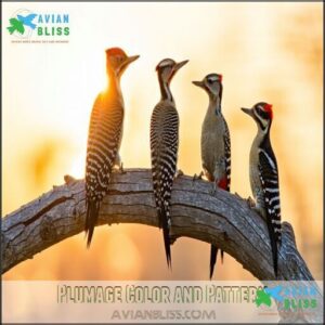 To identify Texas woodpeckers, focus on their distinctive plumage details.