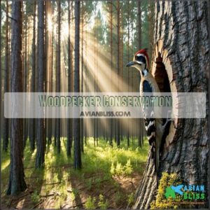 By protecting critical habitats and partnering with landowners, these initiatives guarantee thriving woodpecker populations while promoting sustainable ecological balance across Texas.