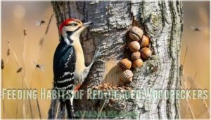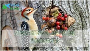 - You’ll notice each species has unique feeding habits—Northern Flickers hunt ants on the ground unlike other tree-drilling woodpeckers, Red-headed Woodpeckers store acorns in tree crevices, and Lewis’s Woodpeckers catch insects mid-flight like flycatchers.