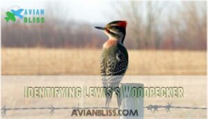 Its slow, gliding flight pattern makes Lewis’s appearance unmistakable during woodpecker identification.